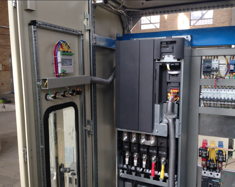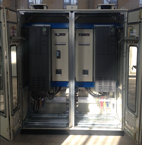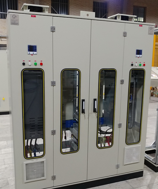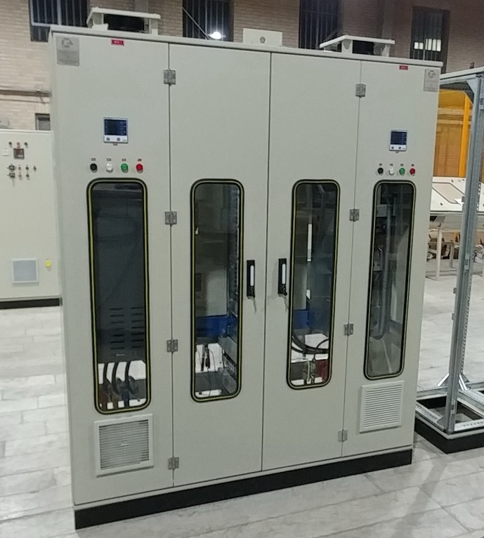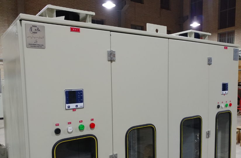 این تابلو دارای دو عدد درایور 90 کیلو وات زیمنس با مدارات کنترلی جهت راه اندازی دو عدد اگززفن بصورت مستقل در کارخانه فولاد خوزستان طراحی و تولید و راه اندازی گردید.